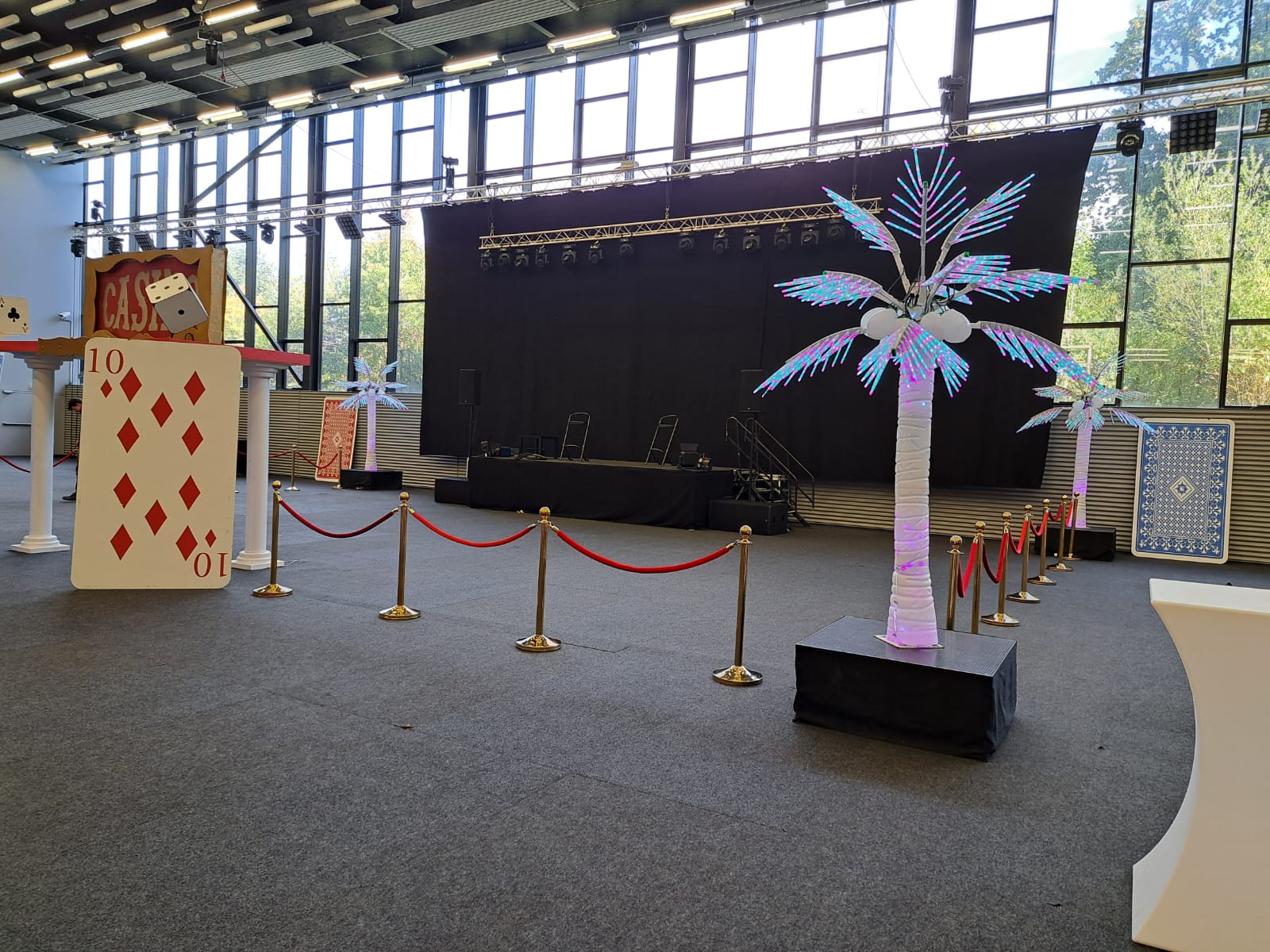 L’ensemble a permis de recréer un univers visuel inspiré de Las Vegas, adapté à l’espace et au format de l’événement.