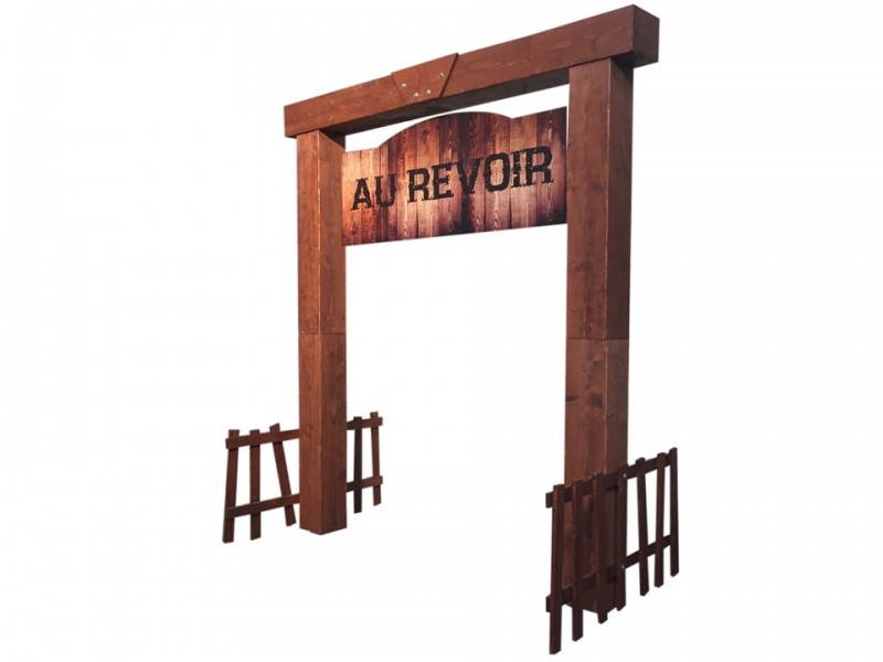 Accueillez et orientez vos participants avec style grâce à la location du portique bois entrée-sortie, un élément décoratif incontournable pour structurer vos espaces événementiels à thème. Ce portique en bois est parfait pour créer une ambiance immersive dès l’arrivée de vos invités lors de vos événements professionnels ou collectivités.